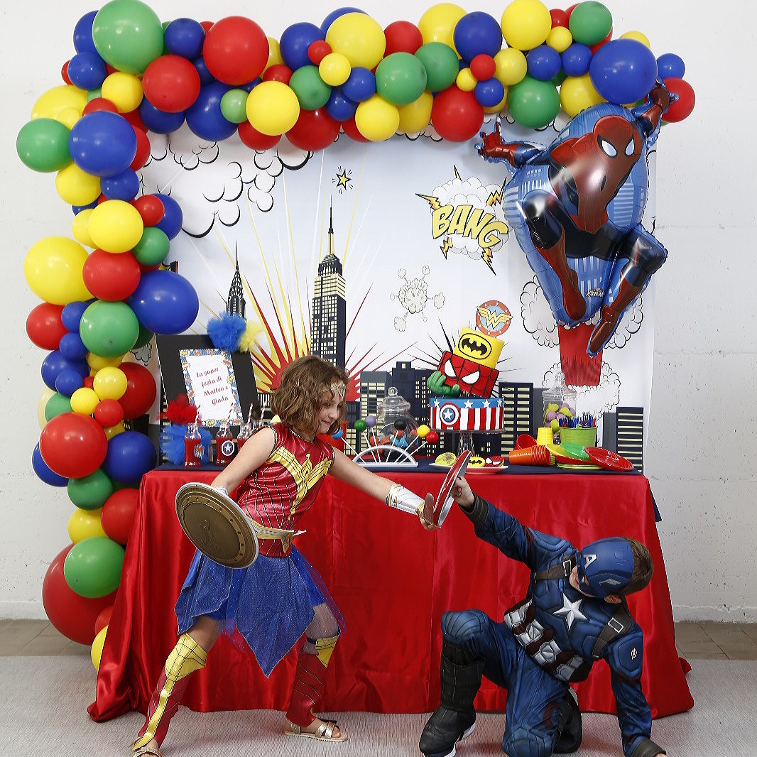 Scegli per il compleanno dei tuoi bambini l’allestimento Minecraft. Il fondale a tema è contornato da un arco di 3